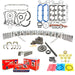 DNJ® Engine Master Rebuild Kits offer a comprehensive solution for restoring engine performance, compression, and reliability. Each master kit includes application-specific components such as pistons, piston rings, main bearings, rod bearings, a full gasket set, oil pump, timing belt or timing chain kit, and depending on the application lifters, freeze plugs, cam bearings, thrust washers, timing cover, and piston pin bushings. These kits provide everything required to perform a complete engine overhaul and more. All components are manufactured to meet or exceed OEM quality standards, ensuring dependable operation and precise fitment for long-term engine life.