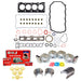 DNJ® Engine Rebuild Kits offer a comprehensive solution for restoring engine performance, compression, and reliability. Each kit includes application-specific components such as a piston set, piston ring set, crankshaft main bearing set, connecting rod bearing set, full gasket set, and, in some applications, a freeze plug set, cam bearing set, thrust washer set, and piston pin bushing set everything required to perform a complete engine overhaul. All components are manufactured to meet or exceed OEM quality standards, ensuring dependable operation and precise fitment for long-term engine life. DNJ® Engine Rebuild Kit are made from premium materials tailored to its specific function. Pistons are made from high-quality cast aluminum. Piston rings are crafted from high strength cast iron or steel and feature moly or chrome facing for superior wear resistance and sealing. Engine bearings are manufactured using tri-metal or bi-metal alloys to ensure optimal load distribution, oil retention, and durability under high-stress conditions. Gaskets are composed of multi-layer steel (MLS), graphite, or composite materials depending on the application and are engineered to withstand extreme heat, pressure, and fluid exposure. Freeze plugs are made from steel, brass, and stainless steel. These material choices ensure long-lasting performance and reliable engine sealing throughout the life of the rebuild. DNJ® also offers a full line of related internal engine components, including camshafts, timing kits, valve kits, engine re-ring kits, and more. With precision engineering and top-tier materials, DNJ® Engine Rebuild Kits provide exceptional performance and long-lasting durability. |
