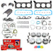 DNJ® Engine Rebuild Kits offer a comprehensive solution for restoring engine performance, compression, and reliability. Each kit includes application-specific components such as a piston set, piston ring set, crankshaft main bearing set, connecting rod bearing set, full gasket set, and, in some applications, a freeze plug set, cam bearing set, thrust washer set, and piston pin bushing set everything required to perform a complete engine overhaul. All components are manufactured to meet or exceed OEM quality standards, ensuring dependable operation and precise fitment for long-term engine life. DNJ® Engine Rebuild Kit are made from premium materials tailored to its specific function. Pistons are made from high-quality cast aluminum. Piston rings are crafted from high strength cast iron or steel and feature moly or chrome facing for superior wear resistance and sealing. Engine bearings are manufactured using tri-metal or bi-metal alloys to ensure optimal load distribution, oil retention, and durability under high-stress conditions. Gaskets are composed of multi-layer steel (MLS), graphite, or composite materials depending on the application and are engineered to withstand extreme heat, pressure, and fluid exposure. Freeze plugs are made from steel, brass, and stainless steel. These material choices ensure long-lasting performance and reliable engine sealing throughout the life of the rebuild. DNJ® also offers a full line of related internal engine components, including camshafts, timing kits, valve kits, engine re-ring kits, and more. With precision engineering and top-tier materials, DNJ® Engine Rebuild Kits provide exceptional performance and long-lasting durability. |