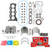 DNJ® Engine Rebuild Kits offer a comprehensive solution for restoring engine performance, compression, and reliability. Each kit includes application-specific components such as a piston set, piston ring set, crankshaft main bearing set, connecting rod bearing set, full gasket set, and, in some applications, a freeze plug set, cam bearing set, thrust washer set, and piston pin bushing set everything required to perform a complete engine overhaul. All components are manufactured to meet or exceed OEM quality standards, ensuring dependable operation and precise fitment for long-term engine life. DNJ® Engine Rebuild Kit are made from premium materials tailored to its specific function. Pistons are made from high-quality cast aluminum. Piston rings are crafted from high strength cast iron or steel and feature moly or chrome facing for superior wear resistance and sealing. Engine bearings are manufactured using tri-metal or bi-metal alloys to ensure optimal load distribution, oil retention, and durability under high-stress conditions. Gaskets are composed of multi-layer steel (MLS), graphite, or composite materials depending on the application and are engineered to withstand extreme heat, pressure, and fluid exposure. Freeze plugs are made from steel, brass, and stainless steel. These material choices ensure long-lasting performance and reliable engine sealing throughout the life of the rebuild. DNJ® also offers a full line of related internal engine components, including camshafts, timing kits, valve kits, engine re-ring kits, and more. With precision engineering and top-tier materials, DNJ® Engine Rebuild Kits provide exceptional performance and long-lasting durability. |