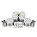 DNJ® Engine Piston Sets are available in multiple types and crown designs to suit specific engine requirements. Standard cast pistons offer durability, while hypereutectic pistons feature added silicon for enhanced heat resistance and wear. Crown options include flat-top for even flame travel, dished for lower compression in boosted engines, domed for higher compression, and Ricardo Bowl for improved diesel combustion. Made from high-quality aluminum alloys with hardened steel pins, DNJ® pistons ensure reliable strength, heat management, and long-lasting performance.