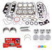 DNJ® Engine Rebuild Kits offer a comprehensive solution for restoring engine performance, compression, and reliability. Each kit includes application-specific components such as a piston set, piston ring set, crankshaft main bearing set, connecting rod bearing set, full gasket set, and, in some applications, a freeze plug set, cam bearing set, thrust washer set, and piston pin bushing set everything required to perform a complete engine overhaul. All components are manufactured to meet or exceed OEM quality standards, ensuring dependable operation and precise fitment for long-term engine life. DNJ® Engine Rebuild Kit are made from premium materials tailored to its specific function. Pistons are made from high-quality cast aluminum. Piston rings are crafted from high strength cast iron or steel and feature moly or chrome facing for superior wear resistance and sealing. Engine bearings are manufactured using tri-metal or bi-metal alloys to ensure optimal load distribution, oil retention, and durability under high-stress conditions. Gaskets are composed of multi-layer steel (MLS), graphite, or composite materials depending on the application and are engineered to withstand extreme heat, pressure, and fluid exposure. Freeze plugs are made from steel, brass, and stainless steel. These material choices ensure long-lasting performance and reliable engine sealing throughout the life of the rebuild. DNJ® also offers a full line of related internal engine components, including camshafts, timing kits, valve kits, engine re-ring kits, and more. With precision engineering and top-tier materials, DNJ® Engine Rebuild Kits provide exceptional performance and long-lasting durability. |