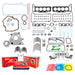 DNJ® Engine Master Rebuild Kits offer a comprehensive solution for restoring engine performance, compression, and reliability. Each master kit includes application-specific components such as pistons, piston rings, main bearings, rod bearings, a full gasket set, oil pump, timing belt or timing chain kit, and depending on the application lifters, freeze plugs, cam bearings, thrust washers, timing cover, and piston pin bushings. These kits provide everything required to perform a complete engine overhaul and more. All components are manufactured to meet or exceed OEM quality standards, ensuring dependable operation and precise fitment for long-term engine life.