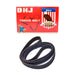 DNJ® Engine Timing Belts are constructed from high-tensile strength fiberglass cords encapsulated in a durable, heat- and wear-resistant rubber compound such as hydrogenated nitrile butadiene rubber (HNBR). The outer surface often features a nylon fabric coating to reduce friction and improve noise characteristics. These materials are chosen for their superior resistance to high temperatures, oil contamination, abrasion, and stretching ensuring long service life and reliable timing under demanding engine conditions.