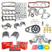 DNJ® Engine Master Rebuild Kits offer a comprehensive solution for restoring engine performance, compression, and reliability. Each master kit includes application-specific components such as pistons, piston rings, main bearings, rod bearings, a full gasket set, oil pump, timing belt or timing chain kit, and depending on the application lifters, freeze plugs, cam bearings, thrust washers, timing cover, and piston pin bushings. These kits provide everything required to perform a complete engine overhaul and more. All components are manufactured to meet or exceed OEM quality standards, ensuring dependable operation and precise fitment for long-term engine life.