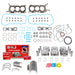 DNJ® Engine Rebuild Kits offer a comprehensive solution for restoring engine performance, compression, and reliability. Each kit includes application-specific components such as a piston set, piston ring set, crankshaft main bearing set, connecting rod bearing set, full gasket set, and, in some applications, a freeze plug set, cam bearing set, thrust washer set, and piston pin bushing set everything required to perform a complete engine overhaul. All components are manufactured to meet or exceed OEM quality standards, ensuring dependable operation and precise fitment for long-term engine life. DNJ® Engine Rebuild Kit are made from premium materials tailored to its specific function. Pistons are made from high-quality cast aluminum. Piston rings are crafted from high strength cast iron or steel and feature moly or chrome facing for superior wear resistance and sealing. Engine bearings are manufactured using tri-metal or bi-metal alloys to ensure optimal load distribution, oil retention, and durability under high-stress conditions. Gaskets are composed of multi-layer steel (MLS), graphite, or composite materials depending on the application and are engineered to withstand extreme heat, pressure, and fluid exposure. Freeze plugs are made from steel, brass, and stainless steel. These material choices ensure long-lasting performance and reliable engine sealing throughout the life of the rebuild. DNJ® also offers a full line of related internal engine components, including camshafts, timing kits, valve kits, engine re-ring kits, and more. With precision engineering and top-tier materials, DNJ® Engine Rebuild Kits provide exceptional performance and long-lasting durability. |