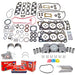 DNJ® Engine Master Rebuild Kits are made from premium materials, each tailored to its specific function. Pistons are made from cast aluminum. Piston rings are made from cast iron or steel, with moly or chrome facing. Bearings are constructed from tri-metal or bi-metal alloys. Gaskets are composed of multi-layer steel (MLS), graphite, or composite materials depending on the application. Freeze plugs are made from steel, brass, or stainless steel, and other materials. These carefully selected materials ensure long-lasting performance and reliable engine sealing throughout the life of the rebuild.