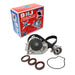 DNJ® Engine Timing Belt Kits with Water Pump are built using premium materials for long-lasting durability and reliable performance. Timing belts feature high-strength rubber reinforced with fiberglass for extended service life. Water pumps use cast aluminum or cast-iron housings with composite or metal impellers for efficient coolant flow. Hydraulic tensioner adjusters are made from solid aluminum and steel for strength under continuous load. Idler pulleys and tensioner bearings are crafted from hardened steel or aluminum with precision-machined surfaces and quality internal bearings for consistent tension. Seals are made from premium rubber for excellent resistance to oil, heat, and chemical degradation.
