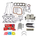 DNJ® Engine Rebuild Kits offer a comprehensive solution for restoring engine performance, compression, and reliability. Each kit includes application-specific components such as a piston set, piston ring set, crankshaft main bearing set, connecting rod bearing set, full gasket set, and, in some applications, a freeze plug set, cam bearing set, thrust washer set, and piston pin bushing set everything required to perform a complete engine overhaul. All components are manufactured to meet or exceed OEM quality standards, ensuring dependable operation and precise fitment for long-term engine life. DNJ® Engine Rebuild Kit are made from premium materials tailored to its specific function. Pistons are made from high-quality cast aluminum. Piston rings are crafted from high strength cast iron or steel and feature moly or chrome facing for superior wear resistance and sealing. Engine bearings are manufactured using tri-metal or bi-metal alloys to ensure optimal load distribution, oil retention, and durability under high-stress conditions. Gaskets are composed of multi-layer steel (MLS), graphite, or composite materials depending on the application and are engineered to withstand extreme heat, pressure, and fluid exposure. Freeze plugs are made from steel, brass, and stainless steel. These material choices ensure long-lasting performance and reliable engine sealing throughout the life of the rebuild. DNJ® also offers a full line of related internal engine components, including camshafts, timing kits, valve kits, engine re-ring kits, and more. With precision engineering and top-tier materials, DNJ® Engine Rebuild Kits provide exceptional performance and long-lasting durability. |