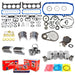 DNJ® Engine Master Rebuild Kits offer a comprehensive solution for restoring engine performance, compression, and reliability. Each master kit includes application-specific components such as pistons, piston rings, main bearings, rod bearings, a full gasket set, oil pump, timing belt or timing chain kit, and depending on the application lifters, freeze plugs, cam bearings, thrust washers, timing cover, and piston pin bushings. These kits provide everything required to perform a complete engine overhaul and more. All components are manufactured to meet or exceed OEM quality standards, ensuring dependable operation and precise fitment for long-term engine life.