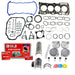 DNJ® Engine Rebuild Kits offer a comprehensive solution for restoring engine performance, compression, and reliability. Each kit includes application-specific components such as a piston set, piston ring set, crankshaft main bearing set, connecting rod bearing set, full gasket set, and, in some applications, a freeze plug set, cam bearing set, thrust washer set, and piston pin bushing set everything required to perform a complete engine overhaul. All components are manufactured to meet or exceed OEM quality standards, ensuring dependable operation and precise fitment for long-term engine life. DNJ® Engine Rebuild Kit are made from premium materials tailored to its specific function. Pistons are made from high-quality cast aluminum. Piston rings are crafted from high strength cast iron or steel and feature moly or chrome facing for superior wear resistance and sealing. Engine bearings are manufactured using tri-metal or bi-metal alloys to ensure optimal load distribution, oil retention, and durability under high-stress conditions. Gaskets are composed of multi-layer steel (MLS), graphite, or composite materials depending on the application and are engineered to withstand extreme heat, pressure, and fluid exposure. Freeze plugs are made from steel, brass, and stainless steel. These material choices ensure long-lasting performance and reliable engine sealing throughout the life of the rebuild. DNJ® also offers a full line of related internal engine components, including camshafts, timing kits, valve kits, engine re-ring kits, and more. With precision engineering and top-tier materials, DNJ® Engine Rebuild Kits provide exceptional performance and long-lasting durability. |