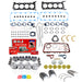 DNJ® Engine Rebuild Kits offer a comprehensive solution for restoring engine performance, compression, and reliability. Each kit includes application-specific components such as a piston set, piston ring set, crankshaft main bearing set, connecting rod bearing set, full gasket set, and, in some applications, a freeze plug set, cam bearing set, thrust washer set, and piston pin bushing set everything required to perform a complete engine overhaul. All components are manufactured to meet or exceed OEM quality standards, ensuring dependable operation and precise fitment for long-term engine life. DNJ® Engine Rebuild Kit are made from premium materials tailored to its specific function. Pistons are made from high-quality cast aluminum. Piston rings are crafted from high strength cast iron or steel and feature moly or chrome facing for superior wear resistance and sealing. Engine bearings are manufactured using tri-metal or bi-metal alloys to ensure optimal load distribution, oil retention, and durability under high-stress conditions. Gaskets are composed of multi-layer steel (MLS), graphite, or composite materials depending on the application and are engineered to withstand extreme heat, pressure, and fluid exposure. Freeze plugs are made from steel, brass, and stainless steel. These material choices ensure long-lasting performance and reliable engine sealing throughout the life of the rebuild. DNJ® also offers a full line of related internal engine components, including camshafts, timing kits, valve kits, engine re-ring kits, and more. With precision engineering and top-tier materials, DNJ® Engine Rebuild Kits provide exceptional performance and long-lasting durability. |