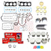 DNJ® Engine Rebuild Kits offer a comprehensive solution for restoring engine performance, compression, and reliability. Each kit includes application-specific components such as a piston set, piston ring set, crankshaft main bearing set, connecting rod bearing set, full gasket set, and, in some applications, a freeze plug set, cam bearing set, thrust washer set, and piston pin bushing set everything required to perform a complete engine overhaul. All components are manufactured to meet or exceed OEM quality standards, ensuring dependable operation and precise fitment for long-term engine life. DNJ® Engine Rebuild Kit are made from premium materials tailored to its specific function. Pistons are made from high-quality cast aluminum. Piston rings are crafted from high strength cast iron or steel and feature moly or chrome facing for superior wear resistance and sealing. Engine bearings are manufactured using tri-metal or bi-metal alloys to ensure optimal load distribution, oil retention, and durability under high-stress conditions. Gaskets are composed of multi-layer steel (MLS), graphite, or composite materials depending on the application and are engineered to withstand extreme heat, pressure, and fluid exposure. Freeze plugs are made from steel, brass, and stainless steel. These material choices ensure long-lasting performance and reliable engine sealing throughout the life of the rebuild. DNJ® also offers a full line of related internal engine components, including camshafts, timing kits, valve kits, engine re-ring kits, and more. With precision engineering and top-tier materials, DNJ® Engine Rebuild Kits provide exceptional performance and long-lasting durability. |