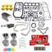 DNJ® Engine Rebuild Kits offer a comprehensive solution for restoring engine performance, compression, and reliability. Each kit includes application-specific components such as a piston set, piston ring set, crankshaft main bearing set, connecting rod bearing set, full gasket set, and, in some applications, a freeze plug set, cam bearing set, thrust washer set, and piston pin bushing set everything required to perform a complete engine overhaul. All components are manufactured to meet or exceed OEM quality standards, ensuring dependable operation and precise fitment for long-term engine life. DNJ® Engine Rebuild Kit are made from premium materials tailored to its specific function. Pistons are made from high-quality cast aluminum. Piston rings are crafted from high strength cast iron or steel and feature moly or chrome facing for superior wear resistance and sealing. Engine bearings are manufactured using tri-metal or bi-metal alloys to ensure optimal load distribution, oil retention, and durability under high-stress conditions. Gaskets are composed of multi-layer steel (MLS), graphite, or composite materials depending on the application and are engineered to withstand extreme heat, pressure, and fluid exposure. Freeze plugs are made from steel, brass, and stainless steel. These material choices ensure long-lasting performance and reliable engine sealing throughout the life of the rebuild. DNJ® also offers a full line of related internal engine components, including camshafts, timing kits, valve kits, engine re-ring kits, and more. With precision engineering and top-tier materials, DNJ® Engine Rebuild Kits provide exceptional performance and long-lasting durability. |