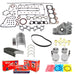 DNJ® Engine Master Rebuild Kits offer a comprehensive solution for restoring engine performance, compression, and reliability. Each master kit includes application-specific components such as pistons, piston rings, main bearings, rod bearings, a full gasket set, oil pump, timing belt or timing chain kit, and depending on the application lifters, freeze plugs, cam bearings, thrust washers, timing cover, and piston pin bushings. These kits provide everything required to perform a complete engine overhaul and more. All components are manufactured to meet or exceed OEM quality standards, ensuring dependable operation and precise fitment for long-term engine life.